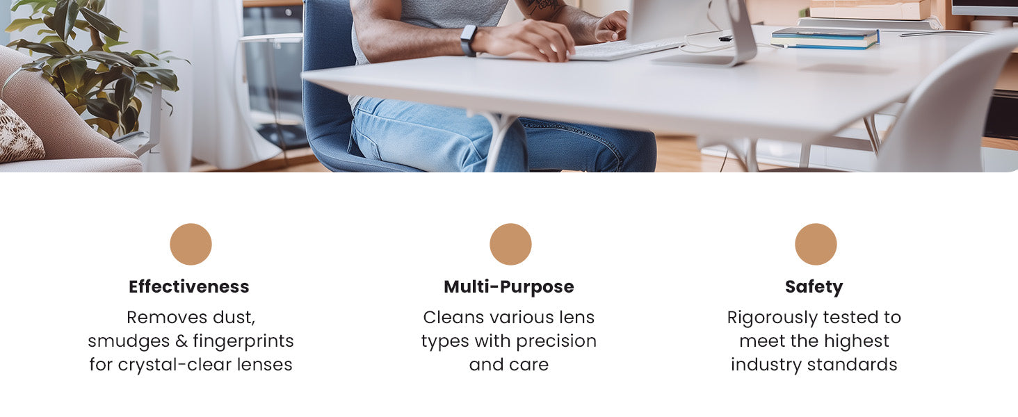 Ultimate Care Kit for Eye Glasses & Screens: This Lens Cleaner will surely be your new BFF once you discover how it effectively cleans & maintains even the most sensitive lenses and screens. Our glass & lens cleaner kit includes two cleaner spray and two microfiber wipes with high-tech formula. This lens & glasses cleaning kit will help remove dirt, static, fog, fingerprints, smudges & more without the fear of damaging them.